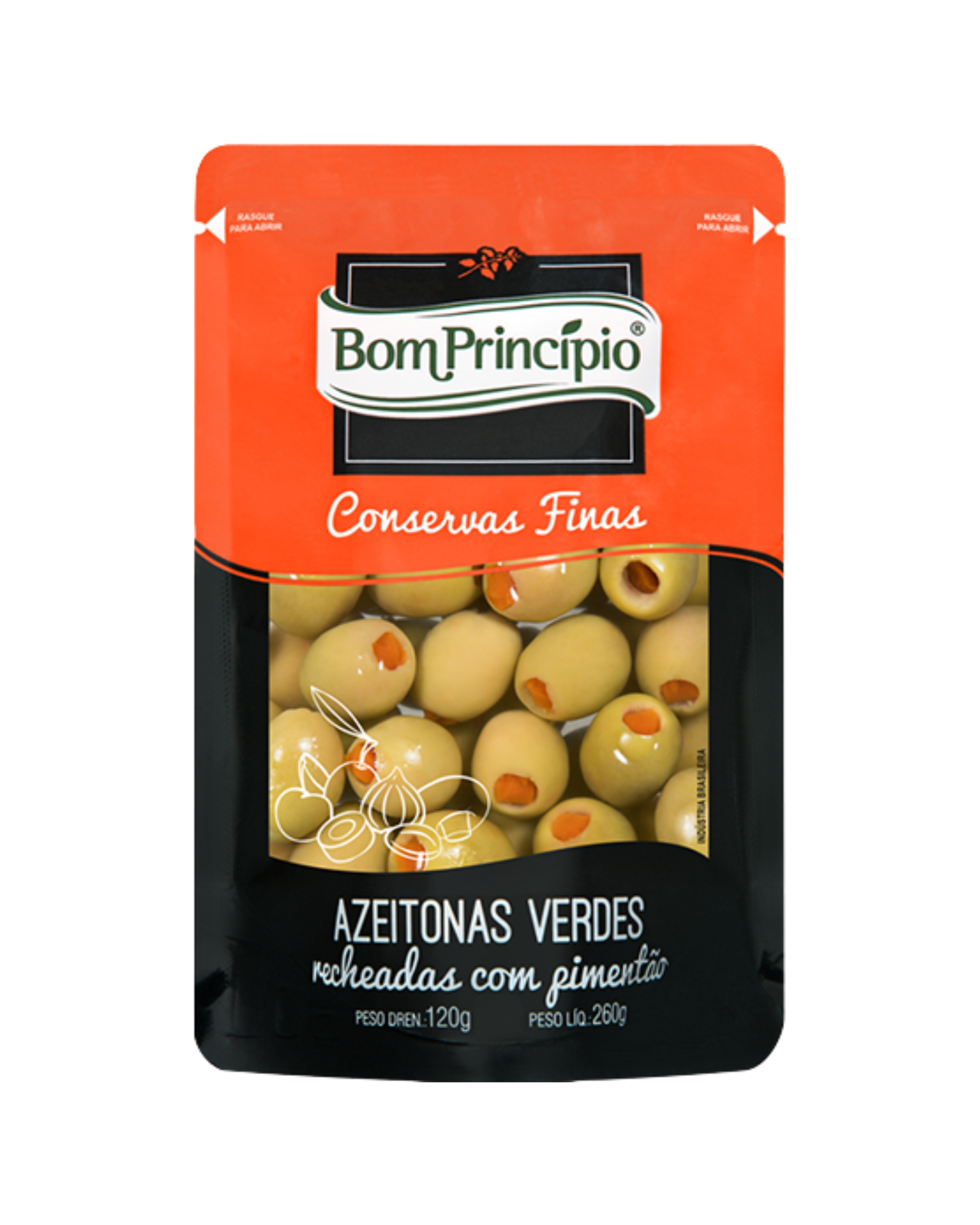 AZEITONAS RECHEADAS C/ PIMENTAO BOM PRINCIPIO 120G