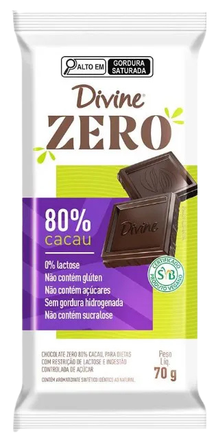 BARRA CHOCOLATE ZERO 80% CACAU 70G